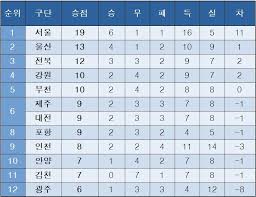 [K리그1] 중간 순위(22일)네이트